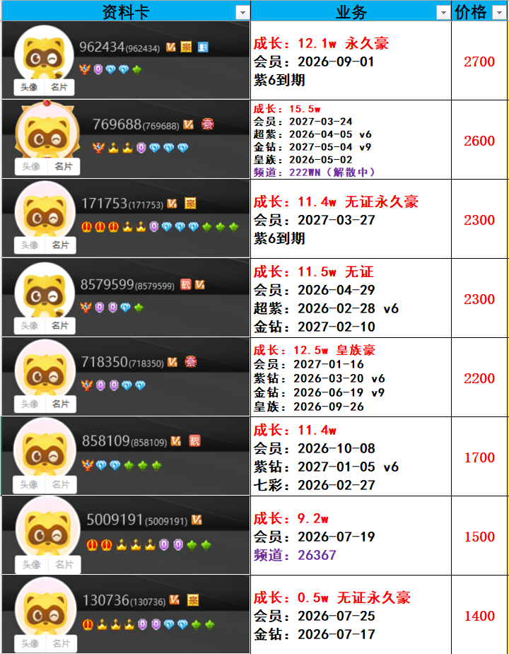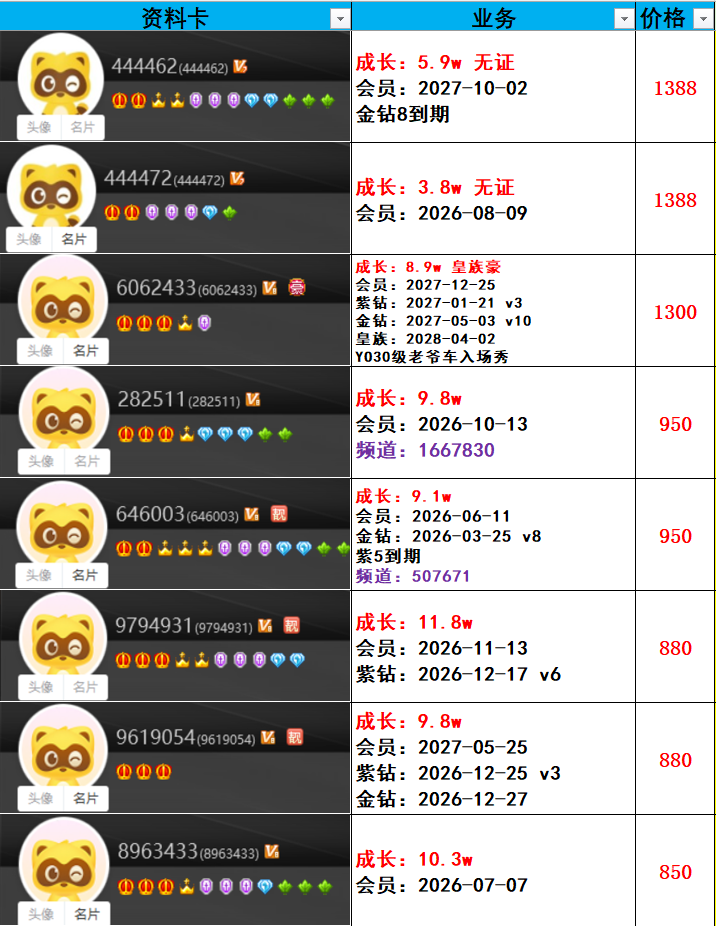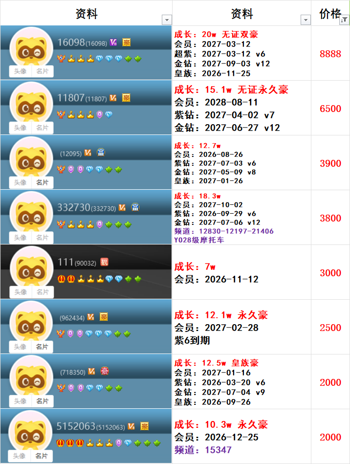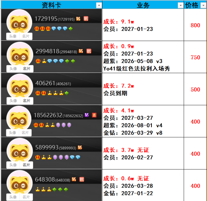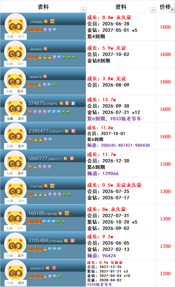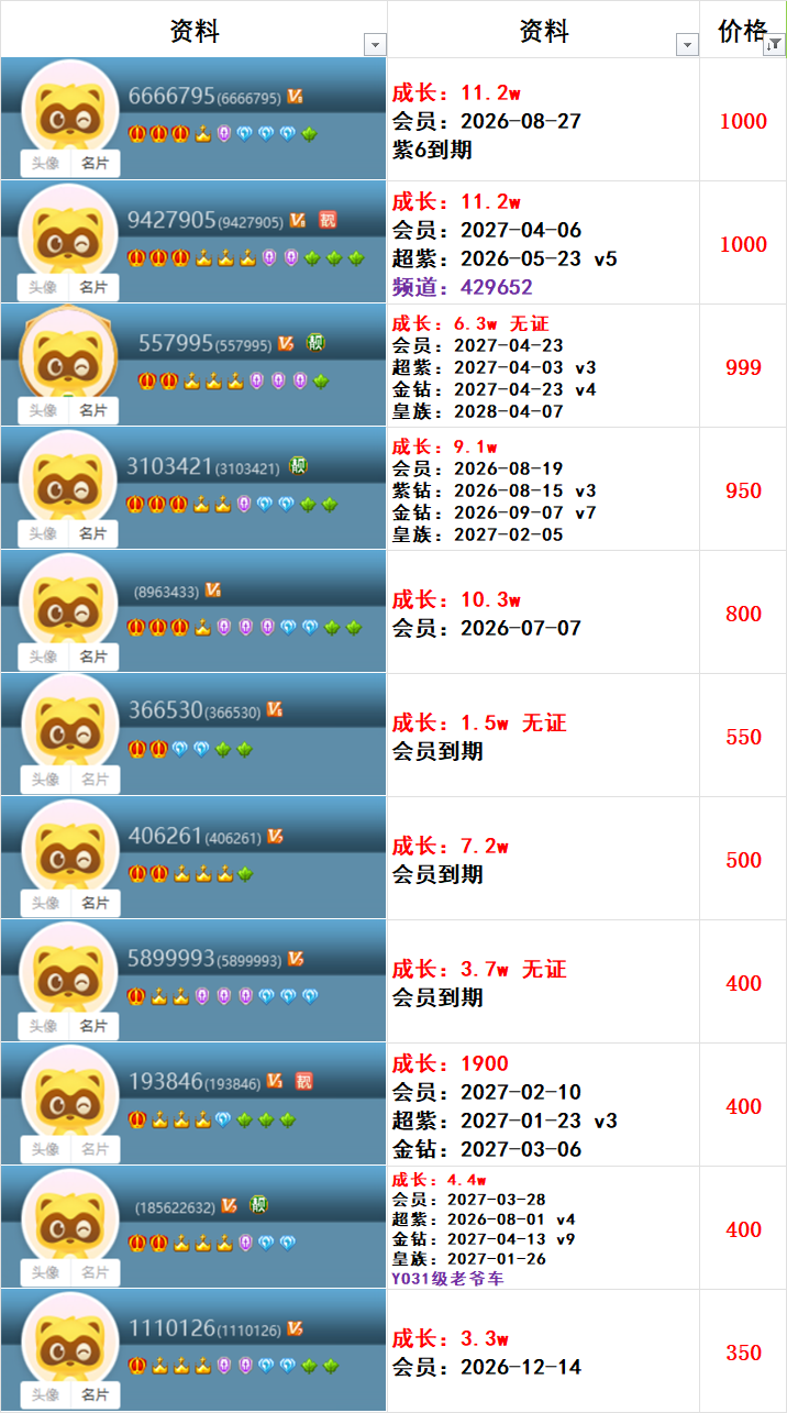 | 6181300---514级---3.6w成长---会员到期---一对800元 |