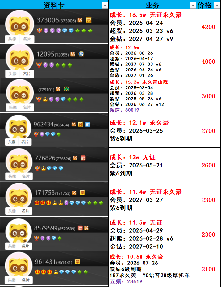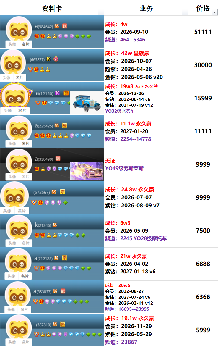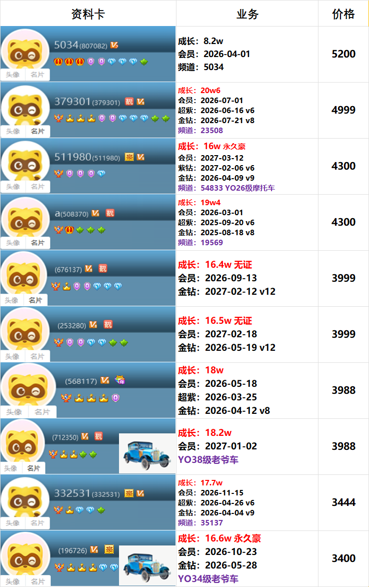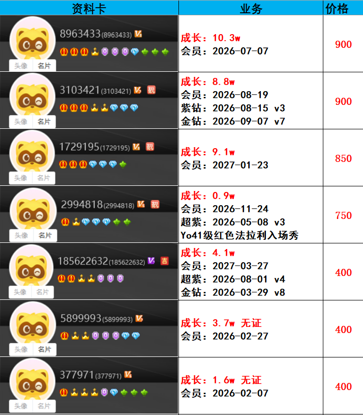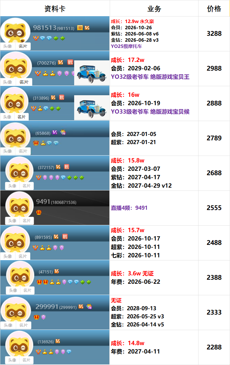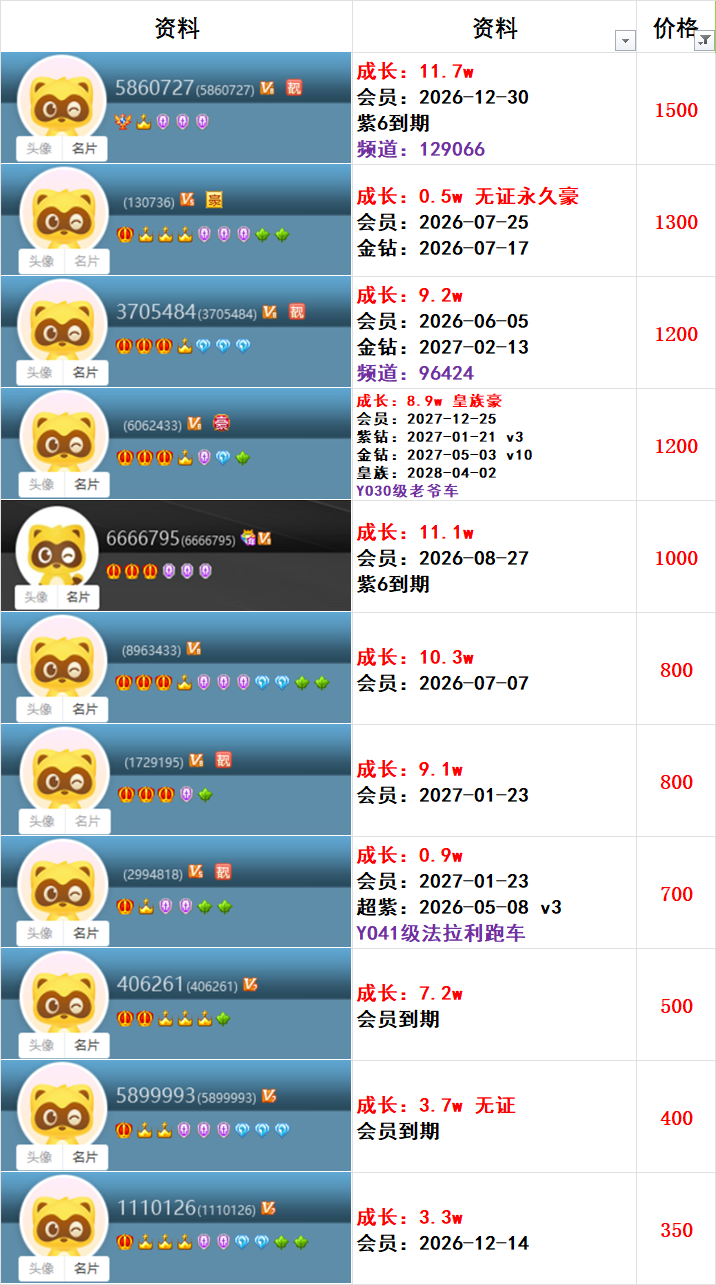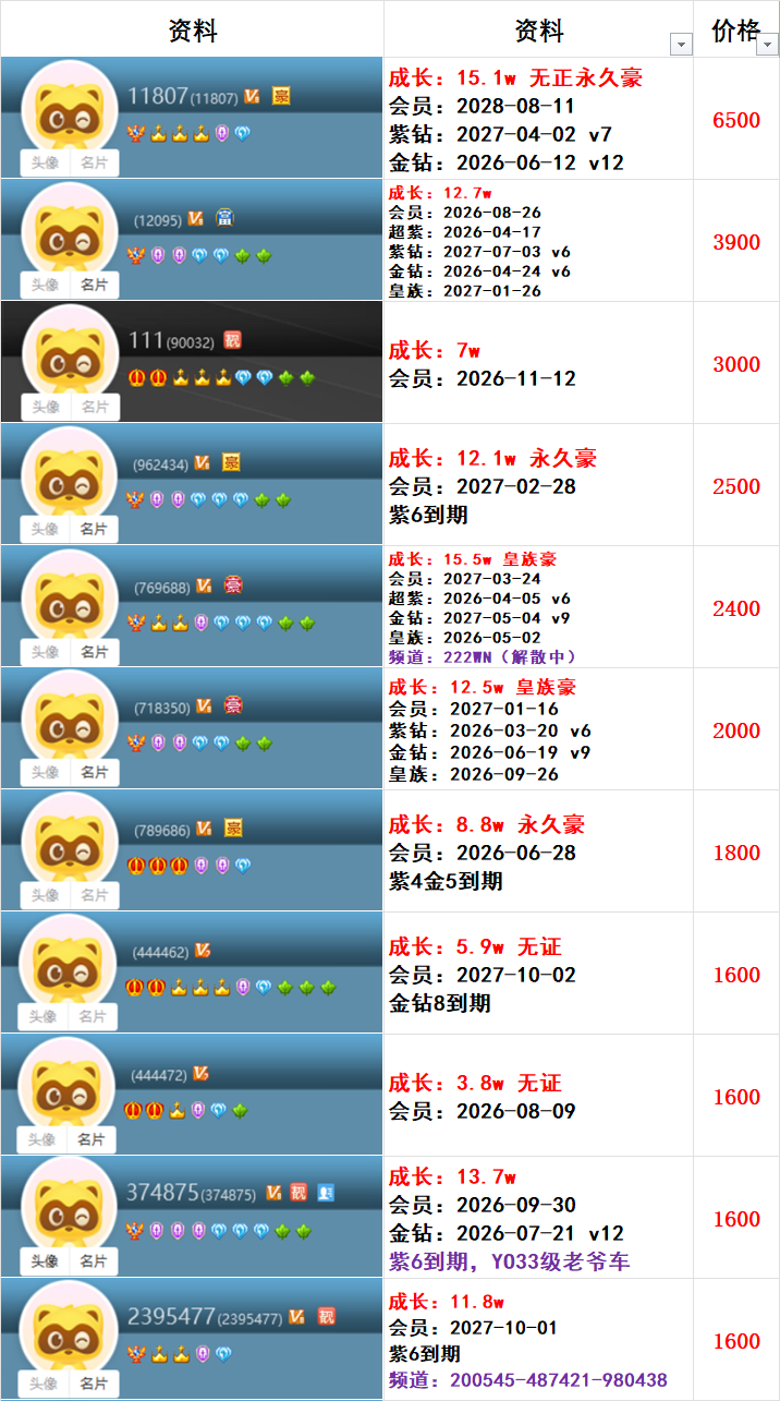 | 6181300---514级---3.6w成长---会员到期---一对800元 |